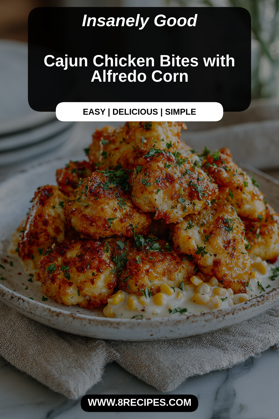 Okay, so this is basically Cajun Chicken Bites with Alfredo Corn — like a spicy, comforting hug from the South that somehow convinced creamy corn to stop being basic and start living its best life. It’s smoky, a little sassy, and forgiving enough to recover if you accidentally set the oven to “charcoal” instead of “roast.” Try it because it’s fast, impressive, and perfect for nights when you want dinner to taste like you tried harder than you actually did.