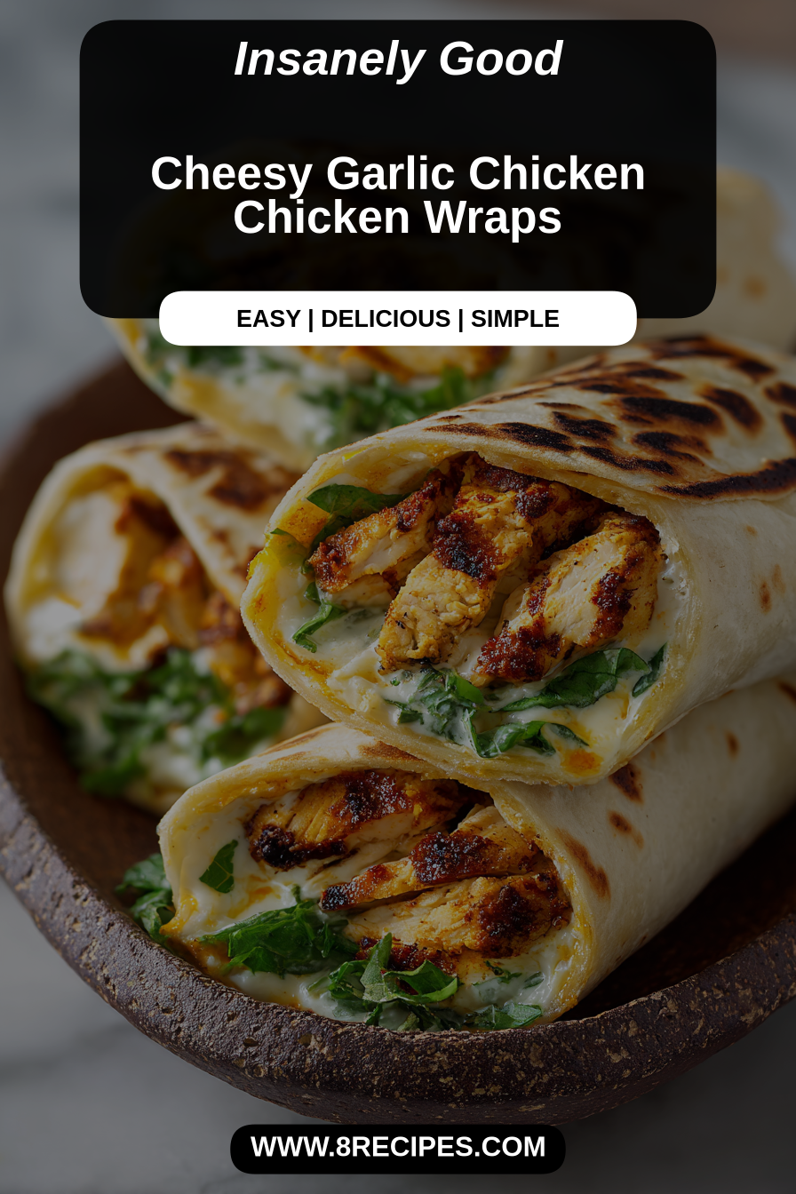I make things cheesy, garlicky, and mildly excessive on purpose — because life is short and tortillas are forgiving. These Cheesy Garlic Chicken Chicken Wraps are exactly what they sound like: juicy, garlicky chicken wrapped up with melty cheese and whatever crunchy nonsense you can find in the fridge. It’s the kind of meal that makes you feel like you did something impressive while only using one skillet and lying about how much salad was involved. Try it because it eats like soul-warming comfort food but folds up like a civilized sandwich.