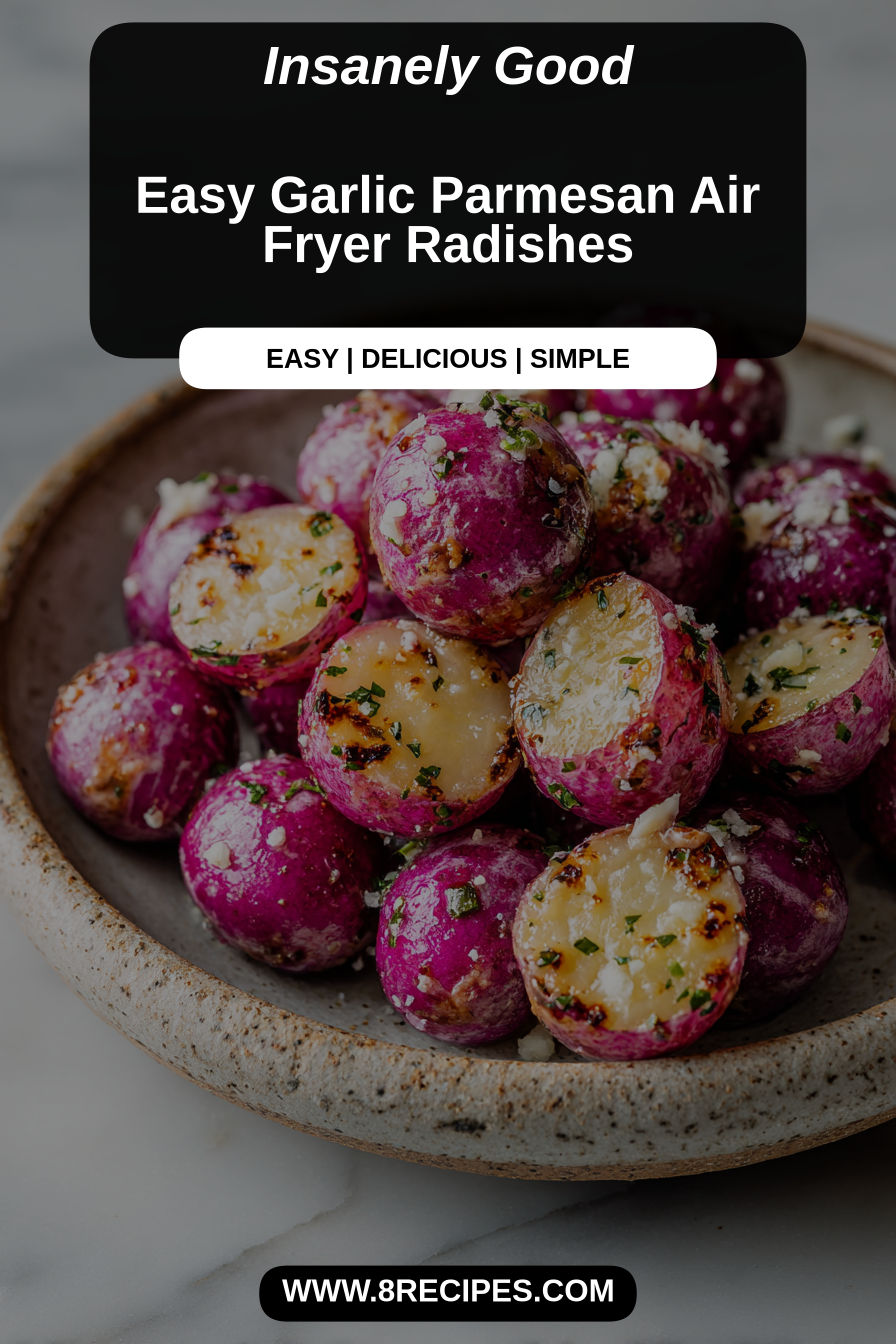 These Easy Garlic Parmesan Air Fryer Radishes are surprisingly versatile! They play nice with almost any protein you can throw at them – think simple baked salmon, a juicy roasted chicken, or even alongside a hearty bowl of pasta. For a lighter meal, toss them into a grain bowl with quinoa and some crumbled feta, or just gobble them up with a dollop of Greek yogurt for a snack that feels a little fancy. They’re great with a big green salad, too, adding a warm, savory element that beats plain old raw radishes any day.