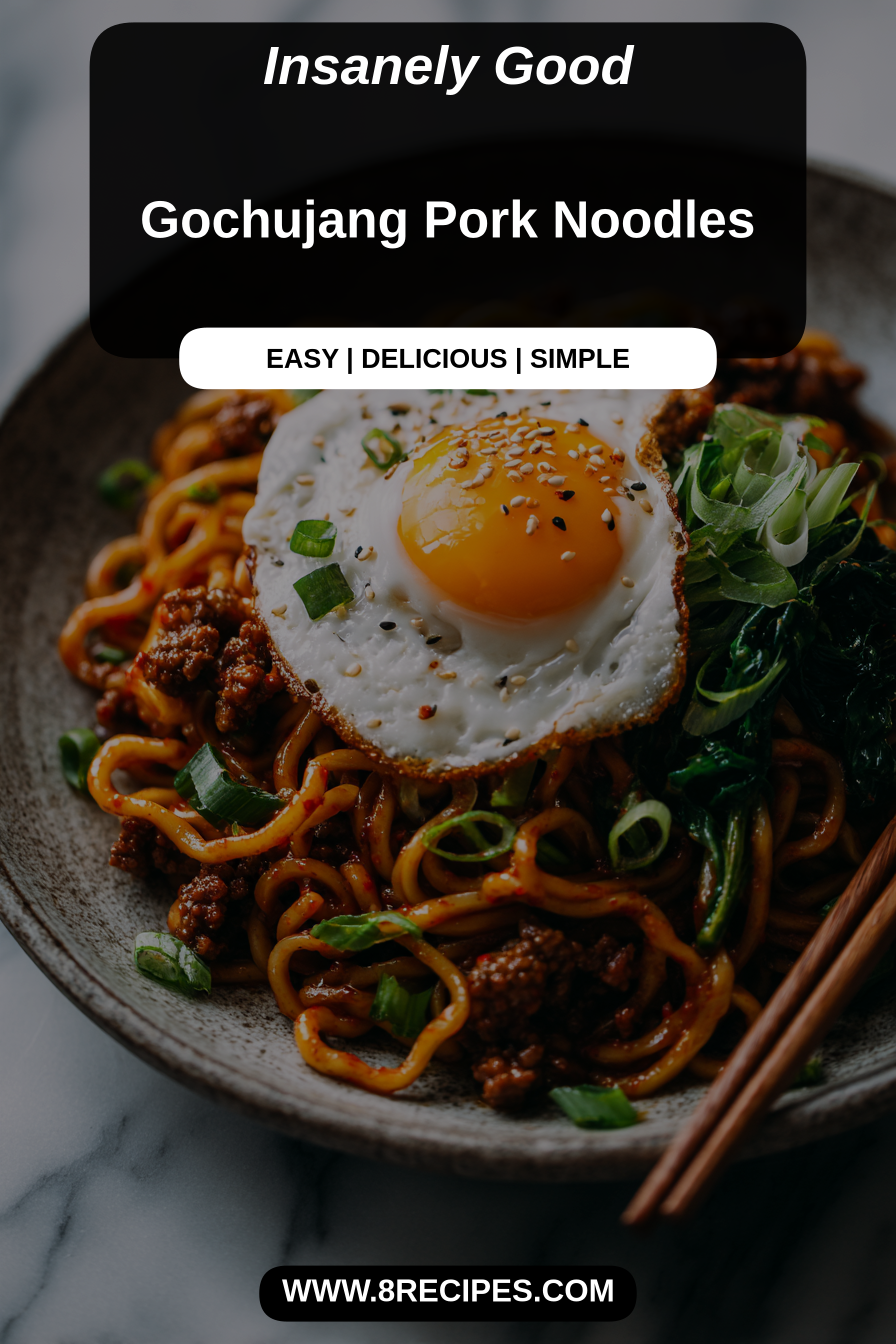 Alright, my culinary adventurers (or just folks who are hungry and tired), buckle up for the Gochujang Pork Noodles. This isn’t just another Tuesday night dinner; this is a full-on flavor explosion that’ll make you question all your life choices before this very moment. It’s got that spicy-sweet kick from the gochujang, tender pork, and slurp-worthy noodles that’ll ruin your shirt but heal your soul. Trust me, if you’re looking for a dish that feels fancy but requires zero fancy pants skills, this is your jam. Or rather, your spicy, noodle-y, porky masterpiece. Try it, if only to prove to your family that you *can* cook something beyond cereal.