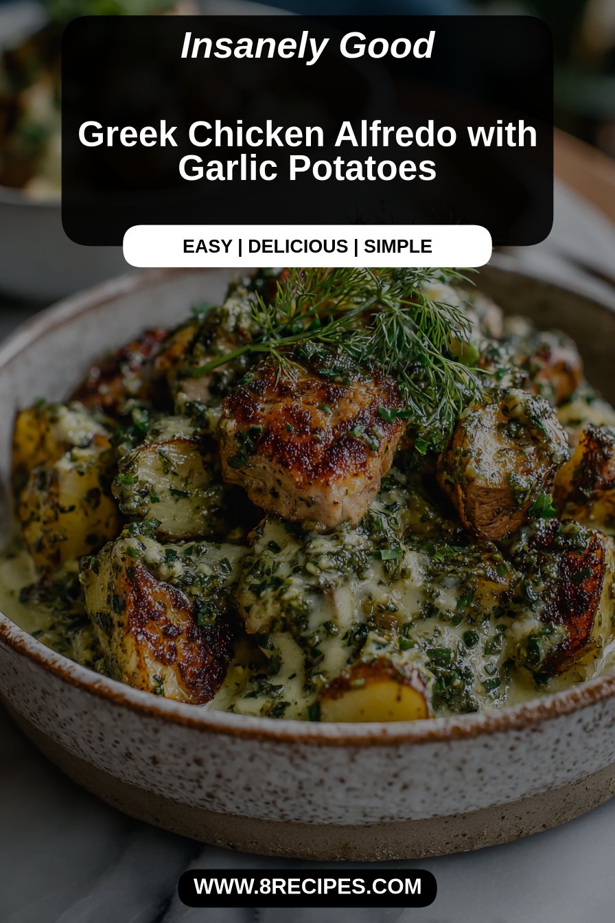 I made this because I wanted fancy food without the soul-crushing effort. Greek Chicken Alfredo with Garlic Potatoes is exactly what it sounds like: creamy, garlicky comfort that wandered into a toga party. It’s got herb-bright Greek vibes (oregano, lemon, feta if you’re fancy), an Alfredo that actually clings to the chicken like it means it, and little roasted potatoes that soak up every last drop. Try it because it tastes like you cooked all day when you actually cheated twice and called it “culinary strategy.”
